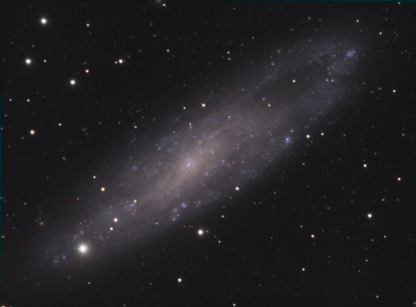 NGC7479 est une galaxie spirale barrée située à 105 millions d'années lumière ; image faite en seulement 11 poses de 10 minutes en attendant que M74 se lève. Pas de couches couleur (peu pertinentes sur cet objet).