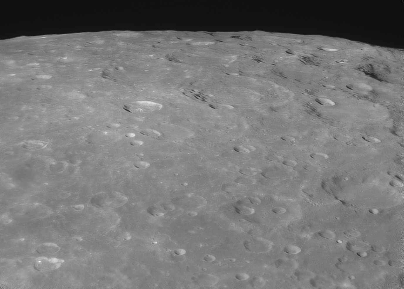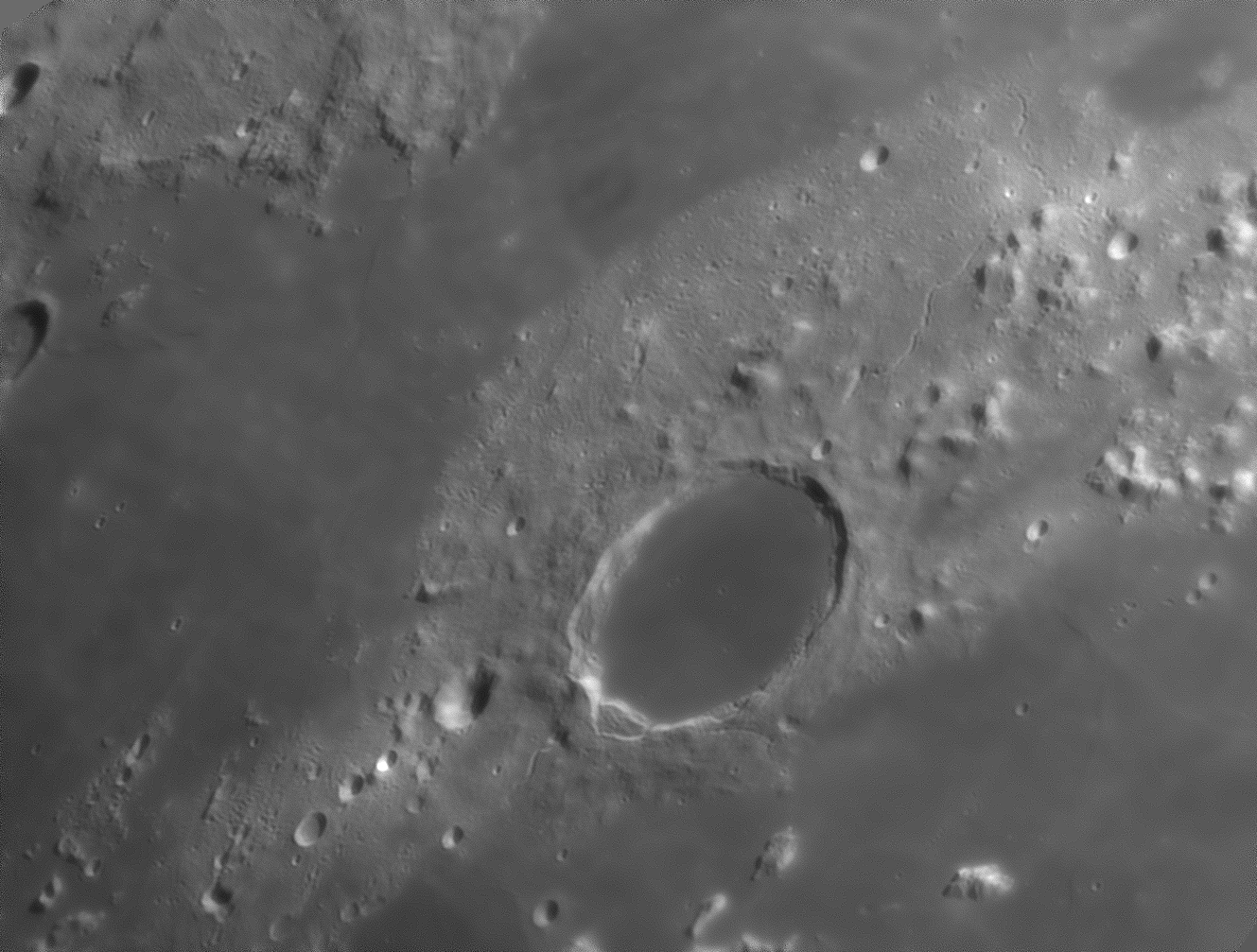 Si dans un petit instrument le cratère Ptolémée semble parfaitement lisse hormis le plus gros cratère intérieur, à une telle résolution on constate aisément qu'il n'en est rien !