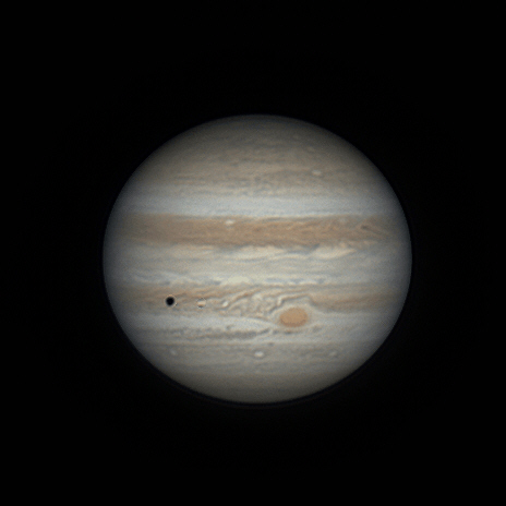 Une seconde longue animation a pu être faite le 17 décembre, avec cette fois une éclipse de Soleil par Io qui poursuit la grande tache rouge, une configuration