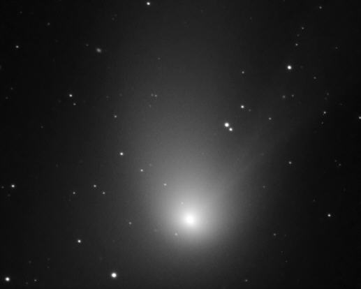 Animation montrant le déplacement de la comète sur une période d'environ 1h10, le 21 janvier 2023 vers 5h du matin. Un resserrement des deux composantes de la queue ionique